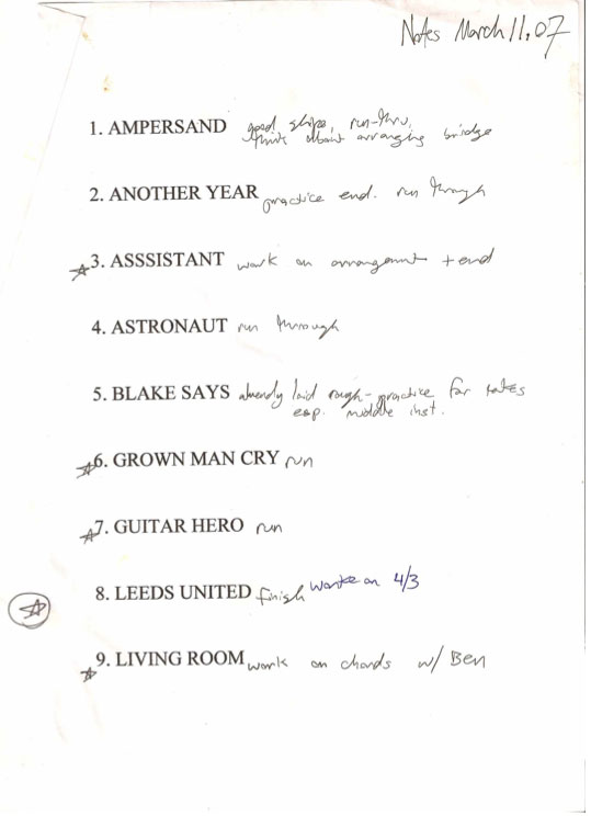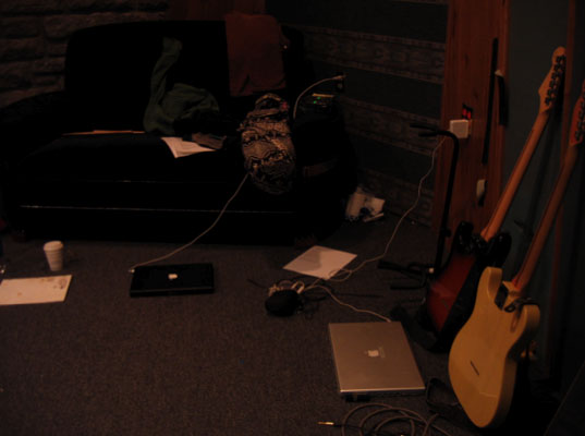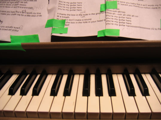Ben playing guitar. There was a while there where he was going to record “Living Room” on guitar. But then he Fired Himself. He also Fired Himself from drumming on “Night Reconnaissance.” He thought it would make a better Dresden Dolls song. And so it did.