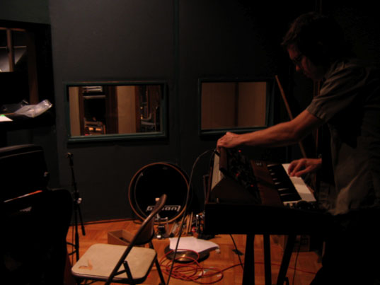 Here’s Ben laying down the SMOKIN’ moog synthesizer bass part for “Guitar Hero”: